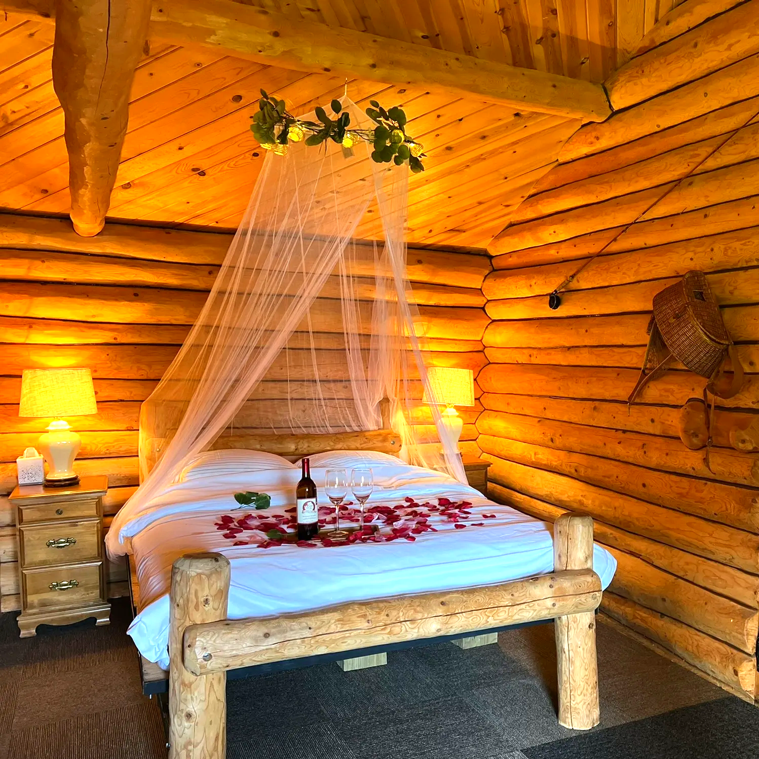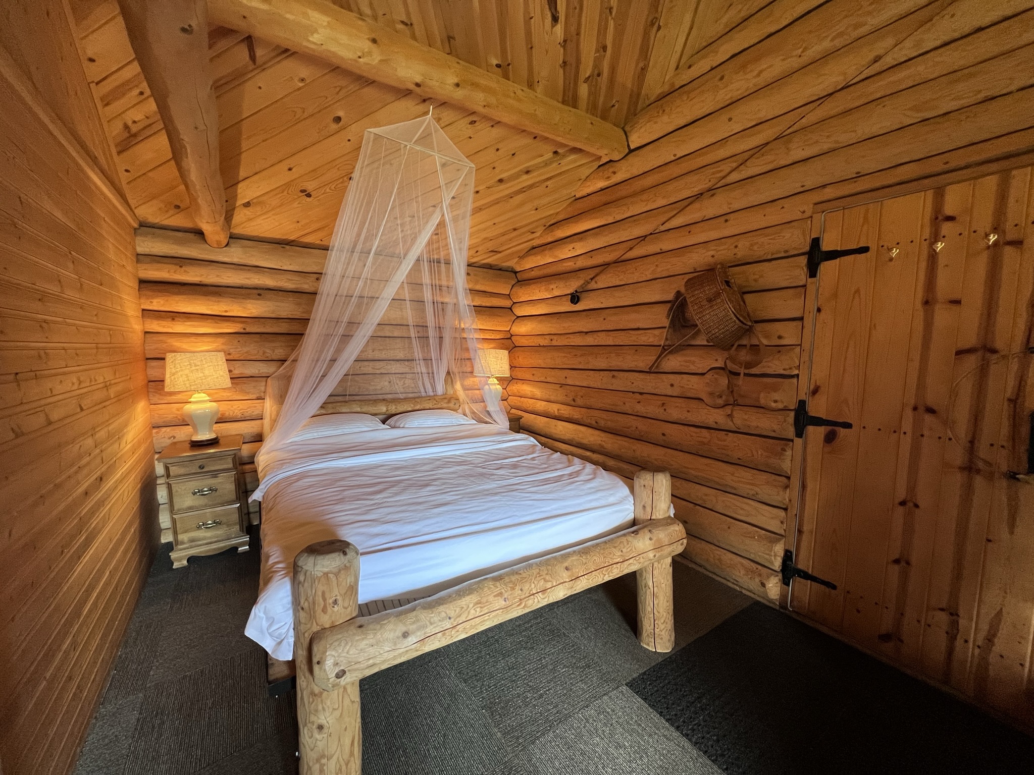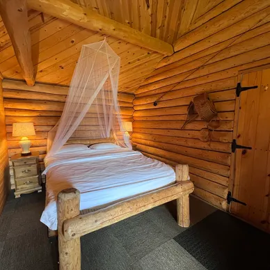 We present deluxe private cabins for unparalleled wilderness accommodation! Choose from three expansive units, each featuring one double bed and a twin. These cabins are carpeted, luxuriously furnished, and come equipped with airtight wood-burning stoves for added comfort. Enjoy full bathrooms and daily maid service for your convenience. Plus, the picture windows offer spectacular mountain views.