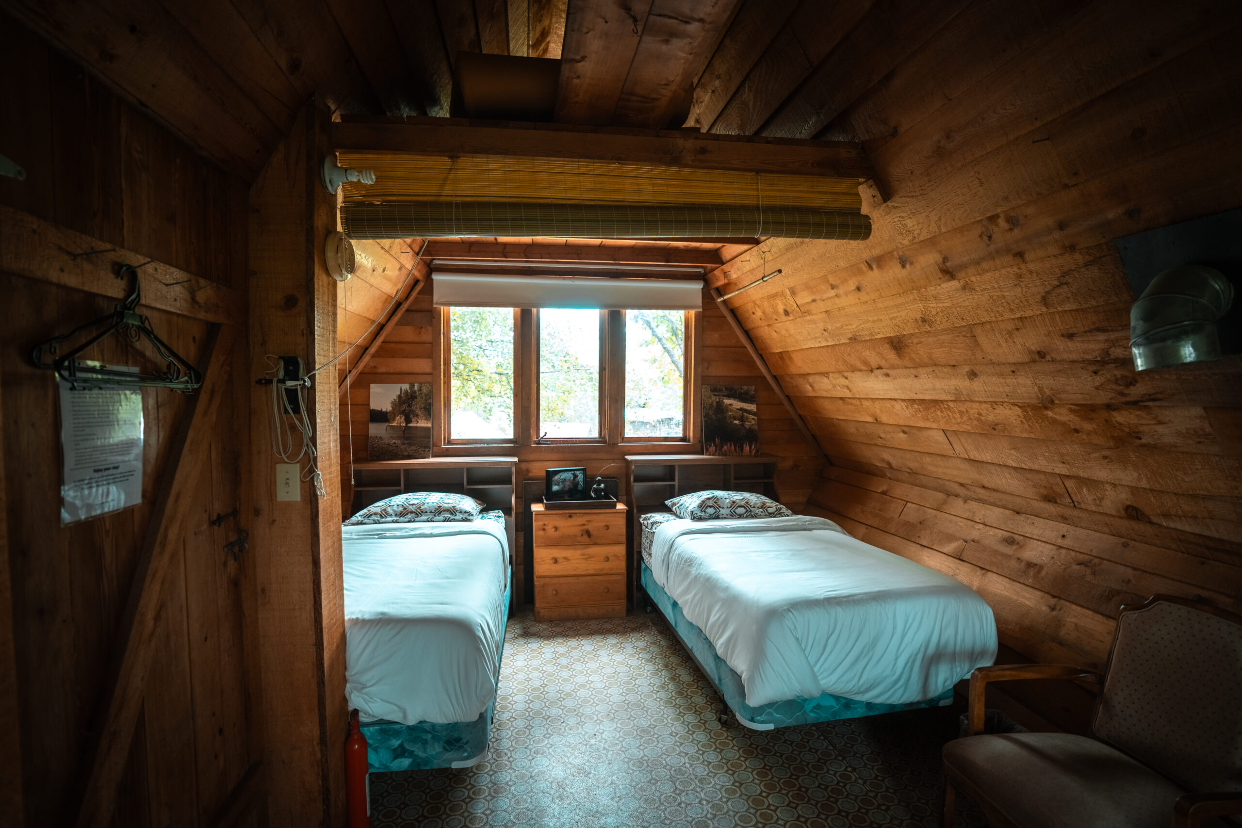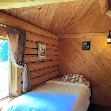 You’ll discover the two standard chalet cabins featuring large picture windows, comfortable twin-size beds, and cozy wood-burning stoves. Each of these budget-friendly cabins accommodates up to four people, allowing for a maximum of 8 guests.